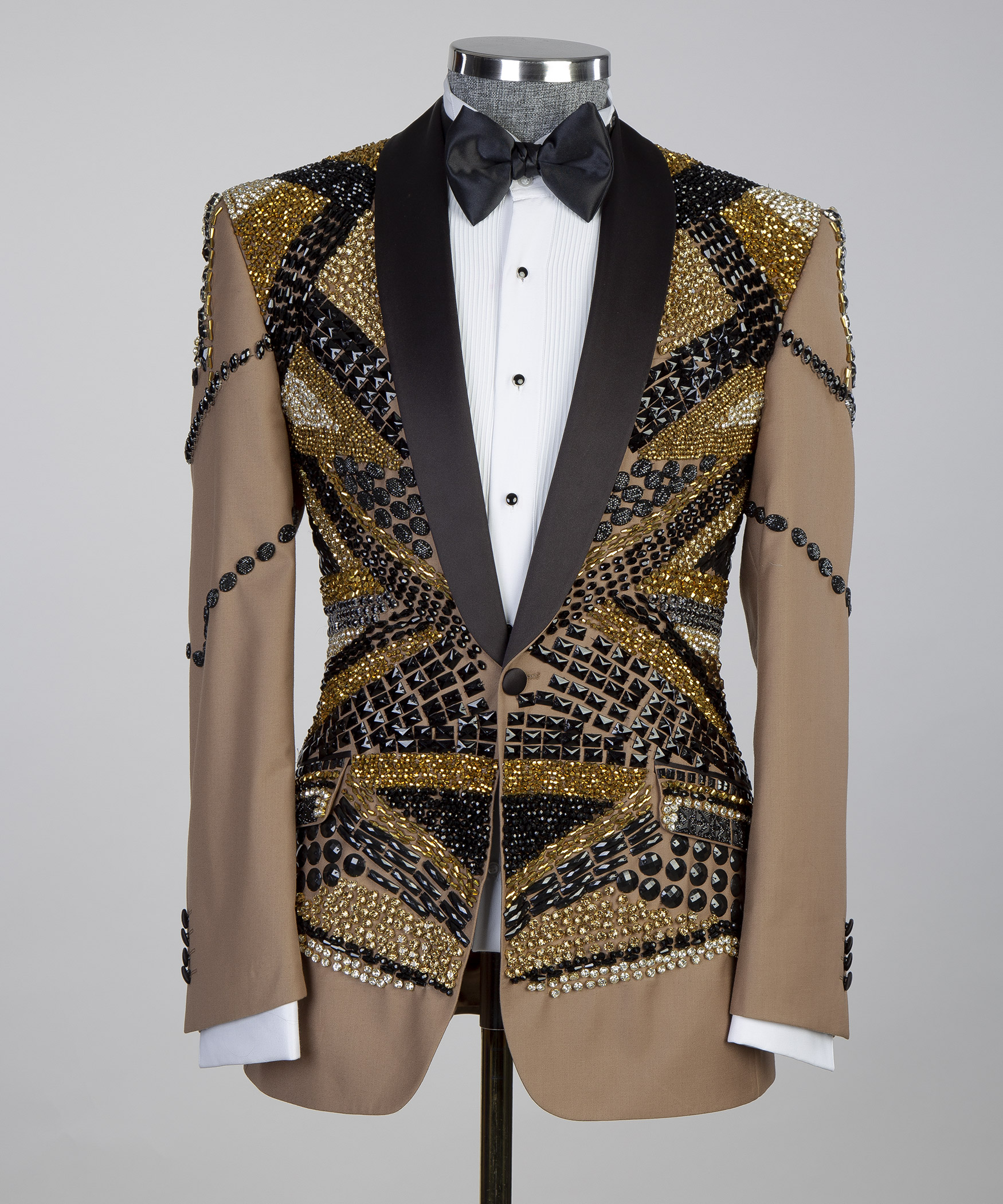 An expertly tailored tuxedo by SB Suits Menswear, created in virgin wool with natural stretch for wearing comfort. Trimmed with silk accents at the lapels, pockets and pant side seams, this three-piece tuxedo is cut to a defined fit for a modern silhouette. Silk-covered buttons add the finishing touch to this timeless ensemble.