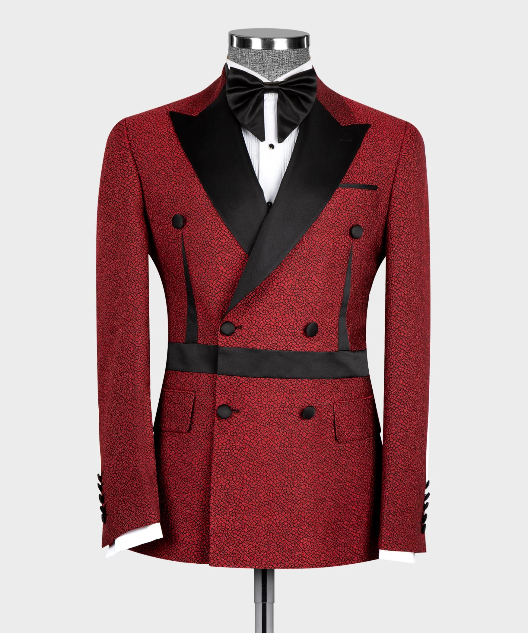 Be the first to review “Red and Black Self Belted Double Breasted Tuxedo”
