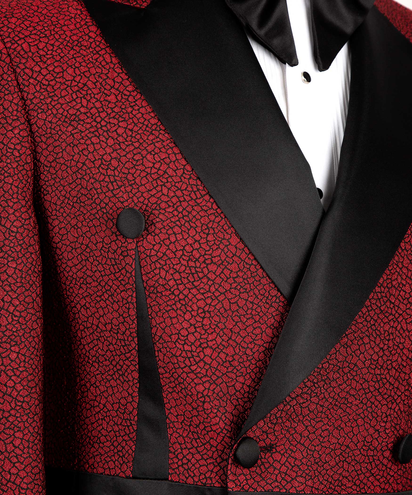 Red and Black Self Belted Double Breasted Tuxedo
